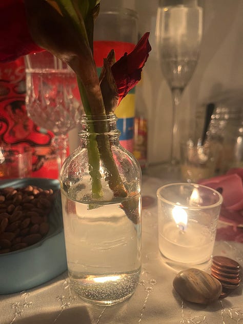 I tended to my spiritual altars and ancestral altars while I winced at the sharp throbbing pain in my pelvis and stomach that arrived.